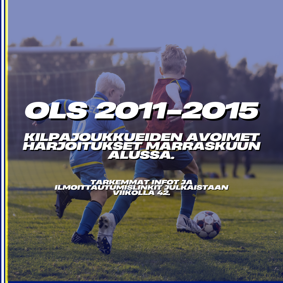 Kaksivaiheinen valinta OLS kilpajoukkueisiin kaudelle 2026: 1. Seura on valinnut ja kutsunut pelaajia 2016 syntyneiden kilpajoukkueeseen tällä viikolla. 2. Nyt toisessa vaiheessa avataan ilmoittautuminen avoimiin harjoituksiin niille seuran / seuran …