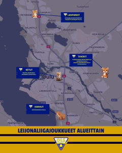 Joukkueiden toiminta pyritään keskittämään mahdollisimman lähelle kotia. Joukkueet ovat nimettynä omien alueidensa mukaan: